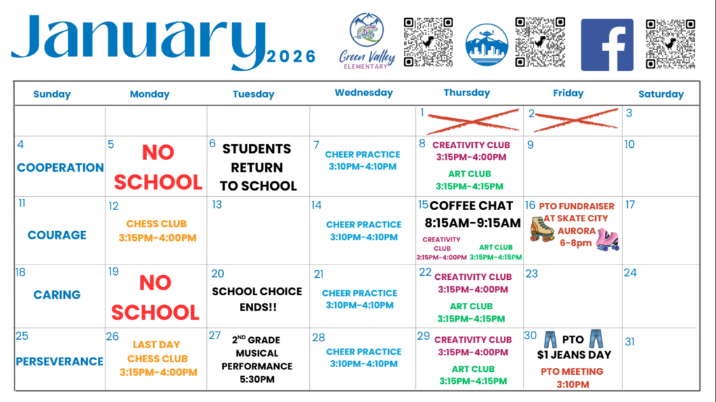 • Fri, Jan 16 — PTO Fundraiser at Skate City of Aurora: 6:00–8:00 PM