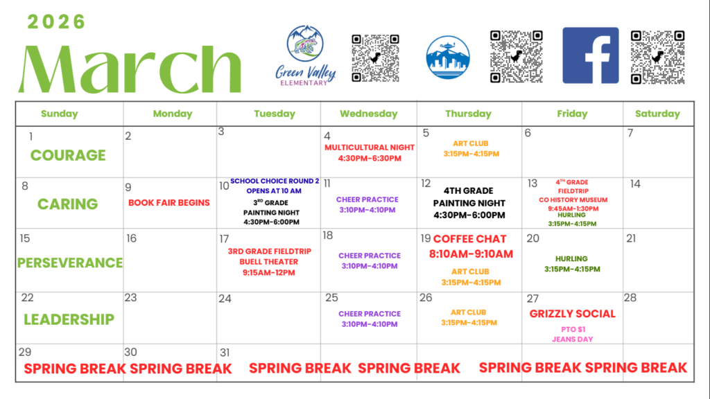 Dear GVE families here are the main activities for the month of March: