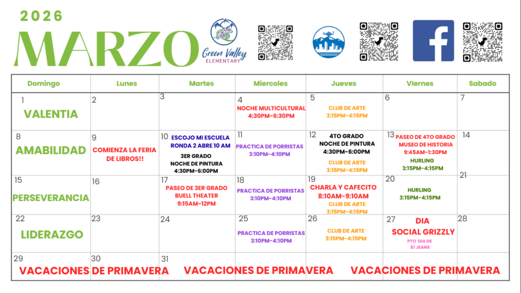 Estimadas familias de GVE aquí están las principales actividades para el mes de Marzo: