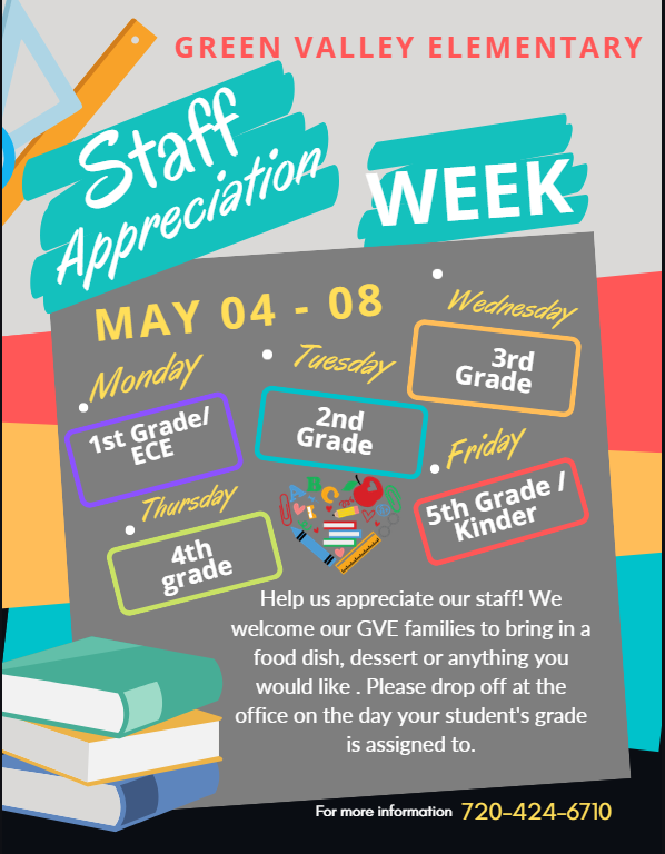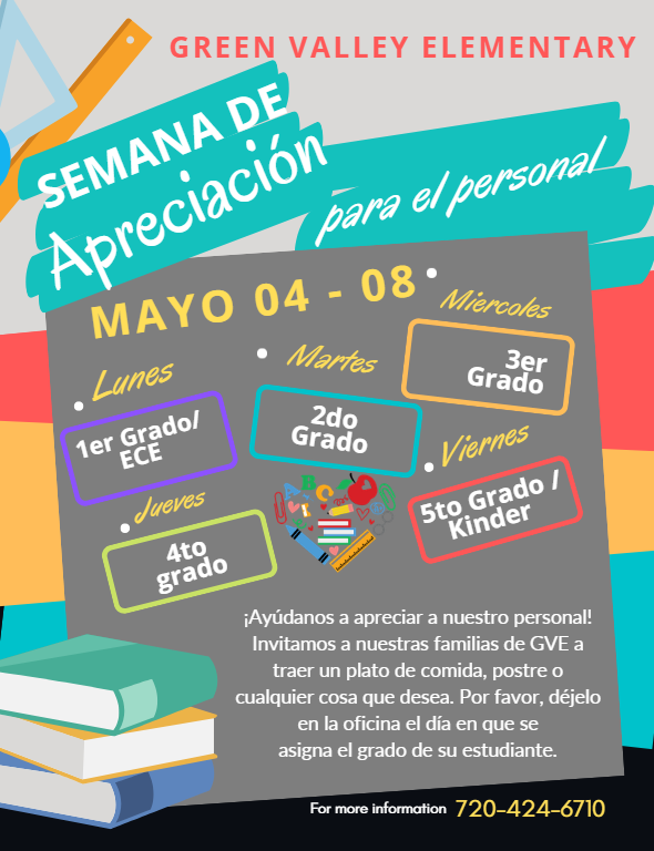 Nos emociona celebrar a nuestro maravilloso personal escolar, ¡y necesitamos su ayuda! Cómo pueden participar: Traigan un plato de comida, un postre o cualquier artículo que deseen aportar. Entréguenlo en la oficina el día asignado al grado de su hijo/a (vean el horario a continuación). ¡Su apoyo significa muchísimo para nuestro equipo!